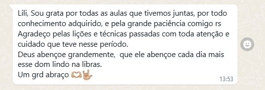 Com o método Lilibras, nossos alunos geralmente já conseguem se comunicar em Libras a partir da terceira aula. O foco prático do nosso método acelera o aprendizado e permite que você comece a sinalizar de forma eficiente desde o início.